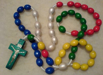„Bardzo piękny jest różaniec misyjny: jeden dziesiątek - biały - jest za starą Europę, aby potrafiła na nowo odzyskać tą ewangelizacyjną moc, która dała początek tak wielu Kościołom; dziesiątek żółty jest za Azję, tryskającą życiem i młodością; dziesiątek zielony jest za Afrykę, udręczoną, lecz otwartą na Dobrą Nowinę; dziesiątek czerwony za Amerykę - będącą obietnicą nowych sił misyjnych; dziesiątek niebieski - za Oceanię, która oczekuje na większe rozpowszechnienie Ewangelii”.(św.Jan Paweł II)